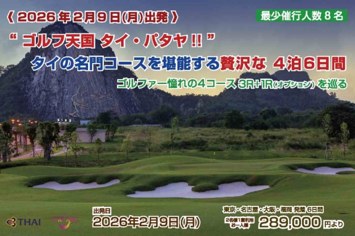 HOME > タイのツアー > “ゴルフ天国 タイ・パタヤ!!” パタヤの名門コースを堪能する 贅沢な4泊6日間