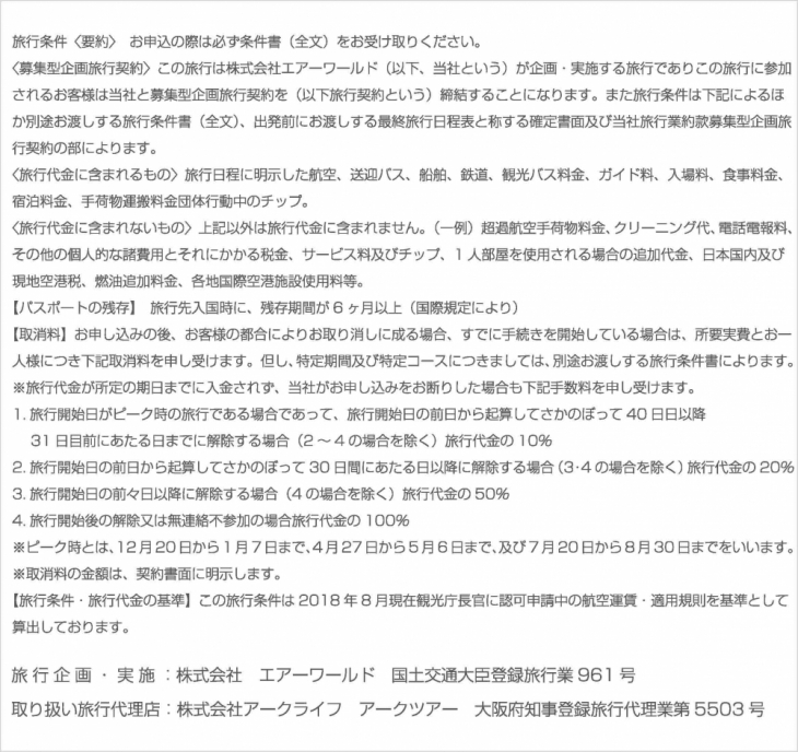 旅行企画・実施:株式会社 エアーワールド 国土交通大臣登録旅行業961号